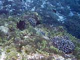 Rough seas. Very strong current. Great viz. Mosaic moray, plenty of fish, coral etc